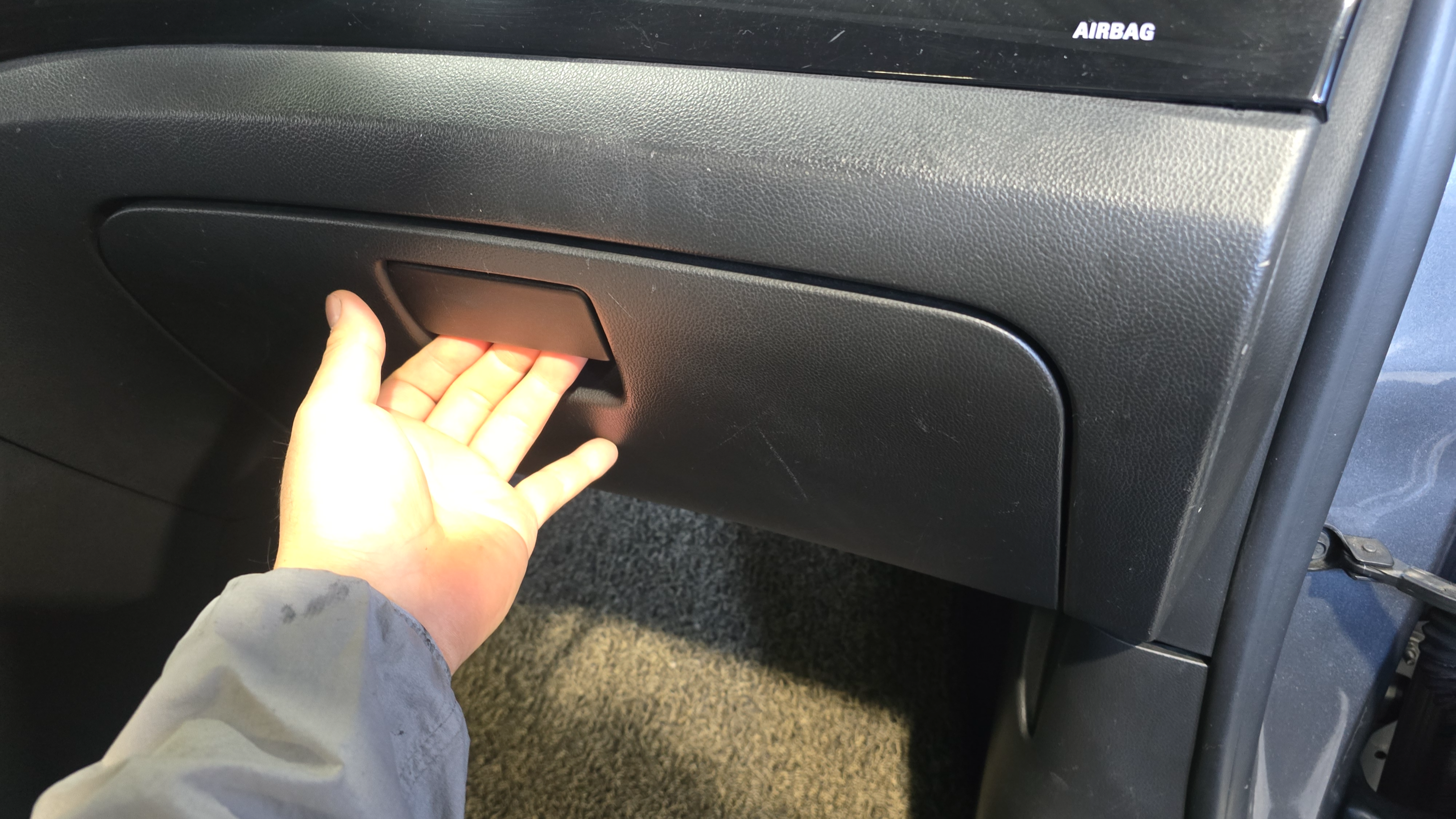 조수석 앞에 있는 글로브박스를 열어줍니다.