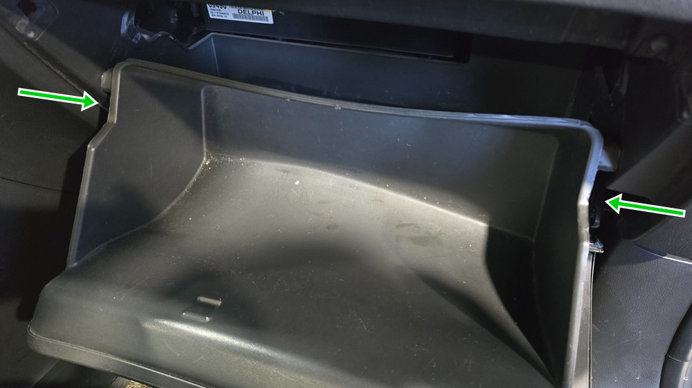 글로브 박스를 열고 오른쪽 옆면에 고정고리를 손가락으로 밀어서 분리시켜 주세요.